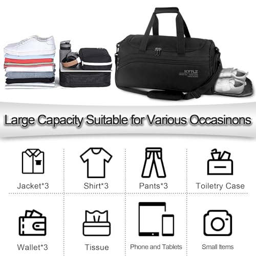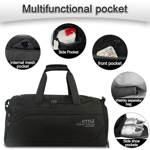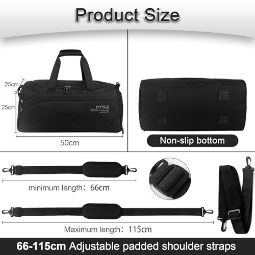 🎒【Gepäcktasche mit Nass und Trockentrennung und Weekender-Tasche mit Schuhfach】Dieser Reisetasche verfügt über ein großes Fach für Ihre trockene und saubere Kleidung und einen separaten Nassbeutel für Ihre nassen Handtücher,schmutzige Kleidung,Toilettenartikel oder Badesachen.Sportrucksack mit separate Schuhfach bietet Platz für Turnschuhe der Größe 44,Es gibt zwei atmungsaktive Schuhtaschenlöcher,die dabei helfen,Gerüche abzuleitenwas atmungsaktiv und hygienisch ist.