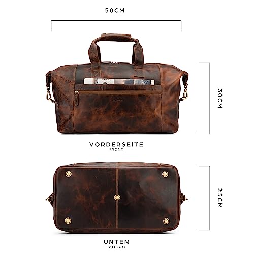 HERAUSRAGENDE QUALITÄT – Bestes und sorgfältig ausgewähltes Echtleder sorgt für eine hohe Langlebigkeit und einzigartige haptische Qualität unserer Leder Reisetaschen. Handgefertigt und mit robust verstärkten Doppelnähten. Wir verwenden ausschließlich echtes Leder, sind eine Marke aus Deutschland und haben höchste Ansprüche an unsere Materialqualität. Bei Fragen sind wir jederzeit für Sie erreichbar, auch telefonisch